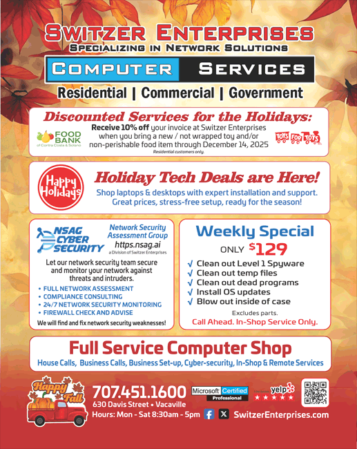 Special Offers, Switzer Enterprises, $89 computer repair, Vacaville, Fairfield, Napa, Vallejo, Travis Air Force Base, Dixon, Winters, CA, Weekend Special